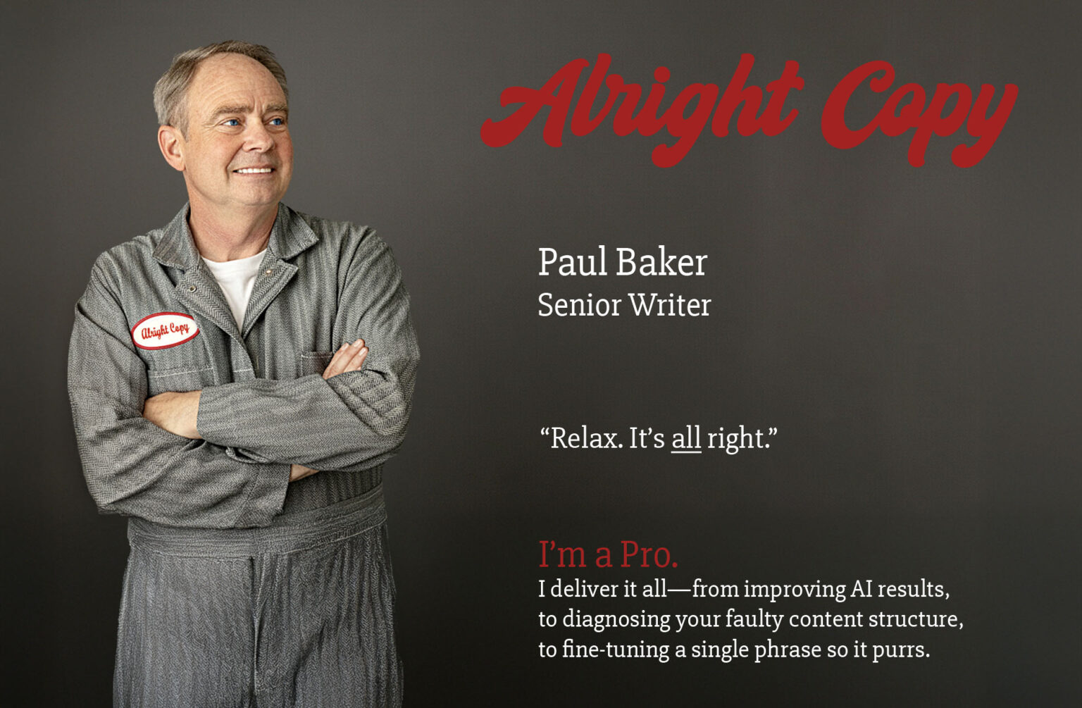 As a Bay Area copywriter I bring over 25 years of expertise to every job. From artificial flavors (Walmart) to Artificial Intelligence (Google), agency to in-house, startups to Fortune 500s, I’ve done it all. So whether you need full time or contract, I’m at your service.